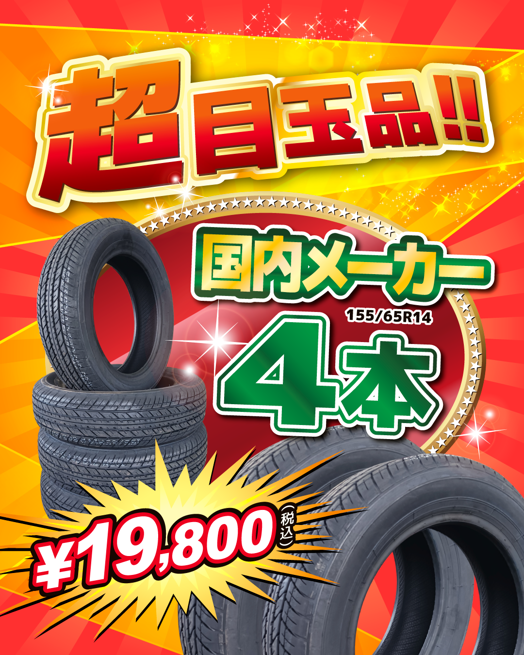 いつも当店をご利用いただき、誠にありがとうございます。 タイヤ交換をご検討中のお客様へ、お得なキャンペーンのお知らせです。 国内メーカー 4本セットを、 特別価格の19,800円(税込)でご用意いたしました。 さらに、上 […]